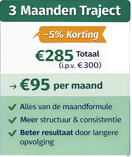 Je ontvangt elke week persoonlijke feedback, bijsturingen en concrete tips om je vooruitgang te versnellen.