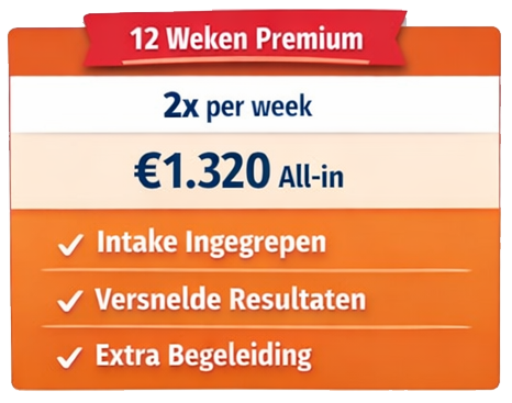 Dit premium traject is ontworpen voor wie écht wil doorbreken. Gedurende twaalf weken krijg je niet alleen wekelijkse 1‑op‑1 trainingssessies, maar ook extra begeleiding, opvolging en ondersteuning om jouw vooruitgang te versnellen. Alles is erop gericht om jou sneller, efficiënter en met meer vertrouwen naar je doelen te brengen.